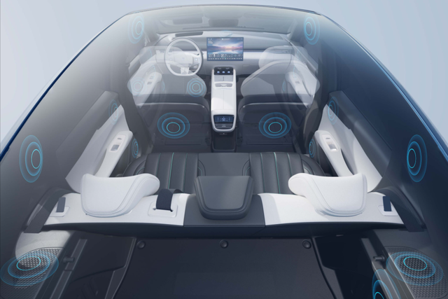 深蓝L07的轴距达到2900mm,其中后排头部空间达952mm、座椅宽度为1382mm,坐在后排中间和坐在副驾驶的宽裕性是差不多的,这才是大五座车子该有的样子。更值得一提的是,深蓝L07的副驾驶座椅不仅带有可实现零重力浮感的电动腿托,另外其肩部和头枕处还带有扬声器,并支持3档律动条件,是同级少有的音乐座椅,加上天空声道,组成7.1.4环绕式声场,各个位置下都能感受沉浸式的视听氛围。